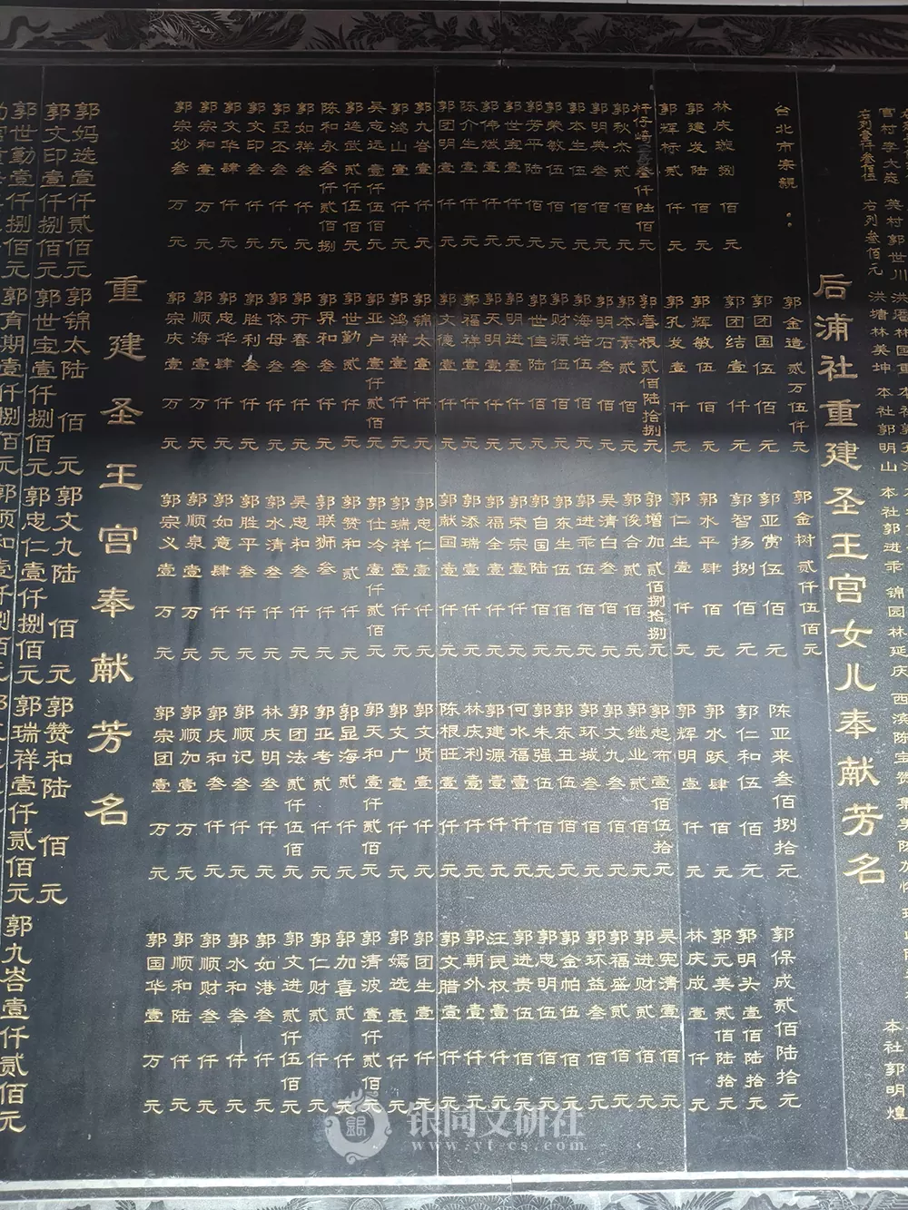 今者,宫宇维新,金碧辉煌,风姿优美,气象万千,神威永驻,庙祀绵延,合境平安,百福骈臻。兹将重建捐助者芳名金额予勒石鸣谢。爰为碑志,以垂永久。