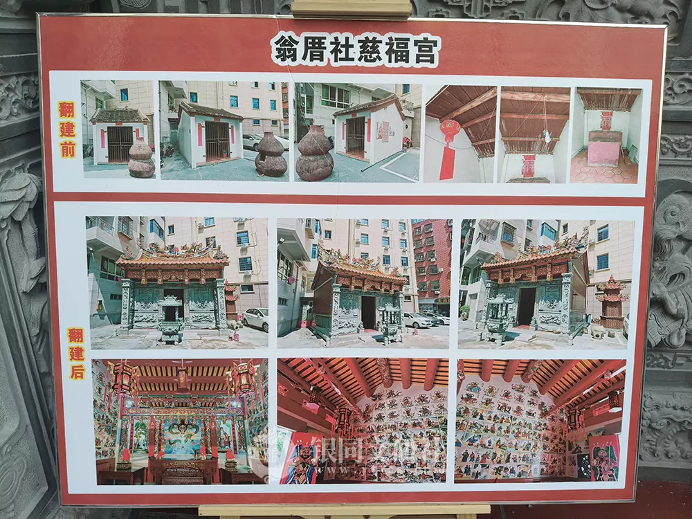 迩来政通人和,百业勃兴,翁厝社人力財力远胜往昔。众乡邻共议重建宫庙,定名“慈福宫”,奉土地公与保生大帝并祀,既存旧日遗迹,亦传扬民俗文化。