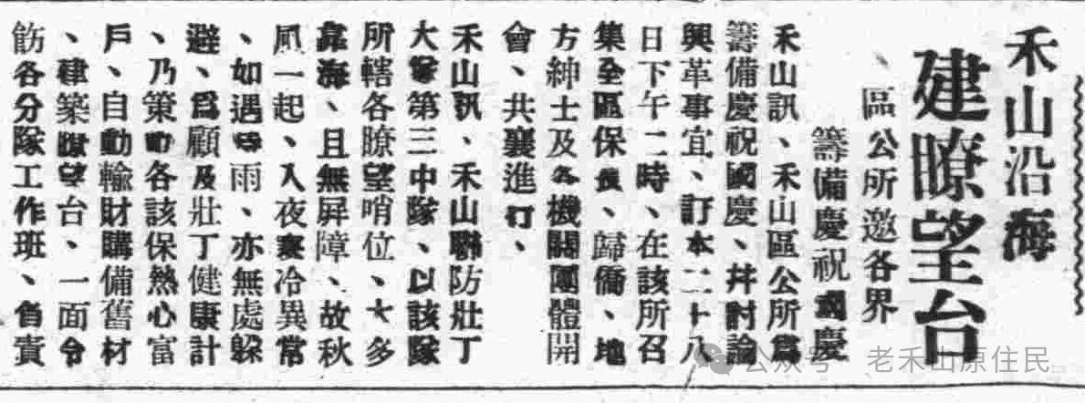 1946年9月24日,《江声报》报道:《禾山沿海 建瞭望台》