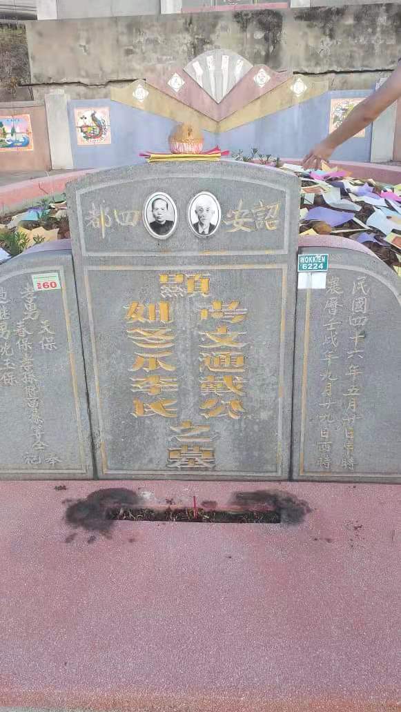 曾祖父:戴文通、曾祖母:李冬瓜,清末民国期间下南洋谋生,育有戴天保、 戴春保两个儿子。