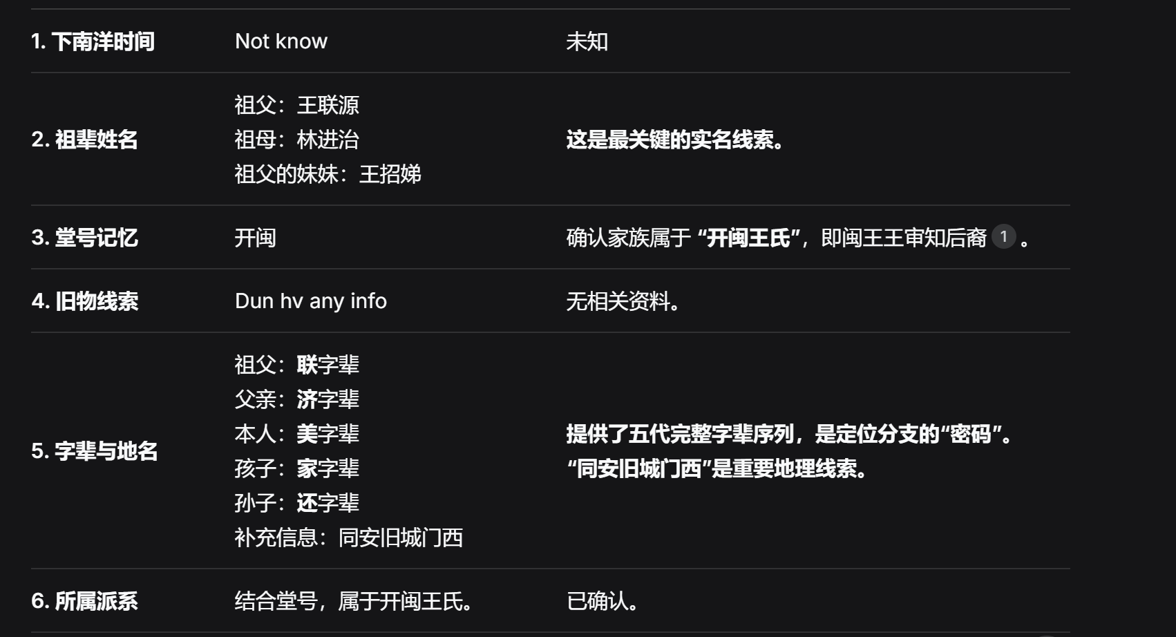 经核对1.2.项结合名字字辈,应该为今集美区侨安街道凤林社区,故请凤林社区王氏宗亲会、族人及热心人士转阅相告查询,圆海外华人返乡谒祖族亲团聚之愿。