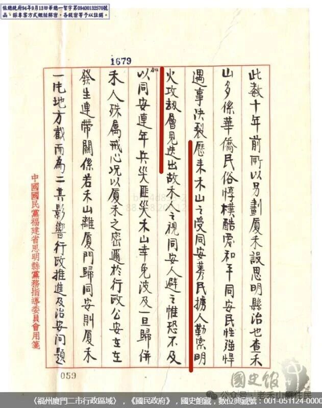 1935年3月1日,国民党思明县党部指导委员会呈行政院林森主席的报告