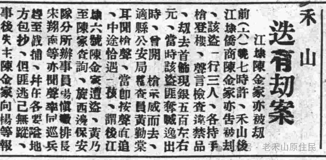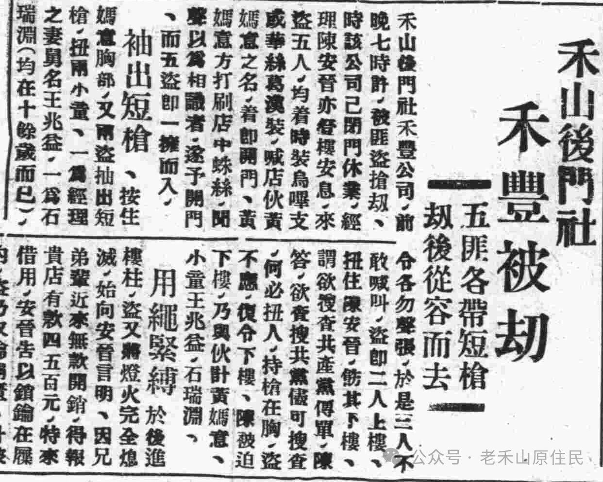 1934年11月28日,禾山后门社的“米绞”(碾米厂)禾丰公司被匪徒持枪入门抢劫。
