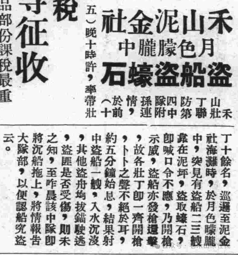 7月2日,泥金、浦口、霞边海中蚝石发现被对岸同安一带盗匪盗窃。7月20日,泥金、浦口、霞边各社海中蚝石,被窃严重,损失当有千余万元。